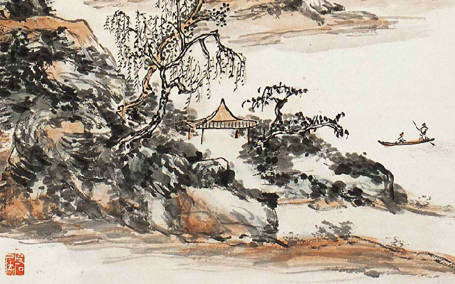 点点染染,用笔运墨宜分明,但又不要太分明。应该既分明,又不分明为妙。画春光明媚,点染不必太分明,宜求其通体光洁,此是以不分明而求分明。画湖山烟雨,点染宜分明,当于笔迹间得雨意,墨韵中出烟雾,此是以分明而使不分明。画法善变,学者可以一试。