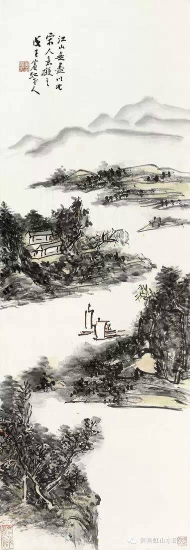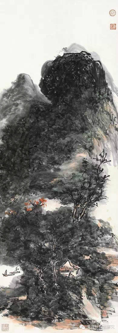 黄宾虹是近现代著名的山水画大师。早年受“新安画派”影响,以干笔淡墨、疏淡清逸为特色,为“白宾虹”;八十岁后以黑密厚重、黑里透亮为特色,为“黑宾虹”。