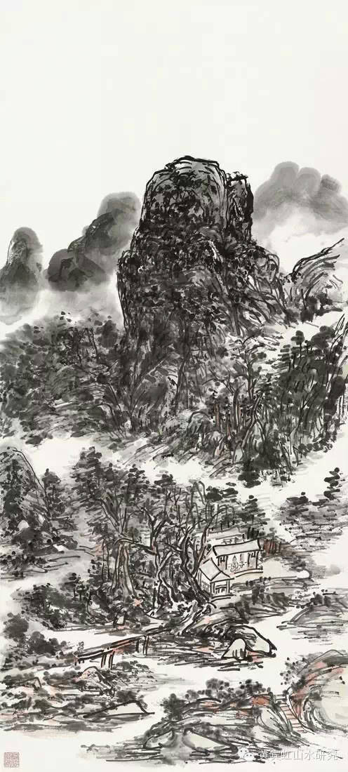 今人作画,不能食古而不化,要出人头地,还要别开生面。我用积墨,意在墨中求层次,表现山川浑然之气。有人既以为墨黑一团,非人家不解,恐我的功力未到之故。积墨作画,实画道中的一个难关,多加议论,道理自明。