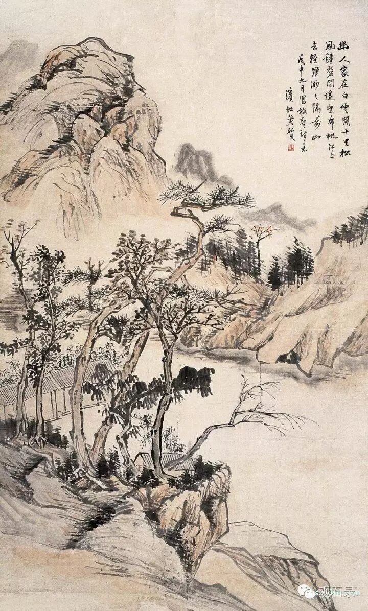 凡画山,其远树及点苔,欲其浑而沉也,故吾以鲁公正书如印印泥之法行之。