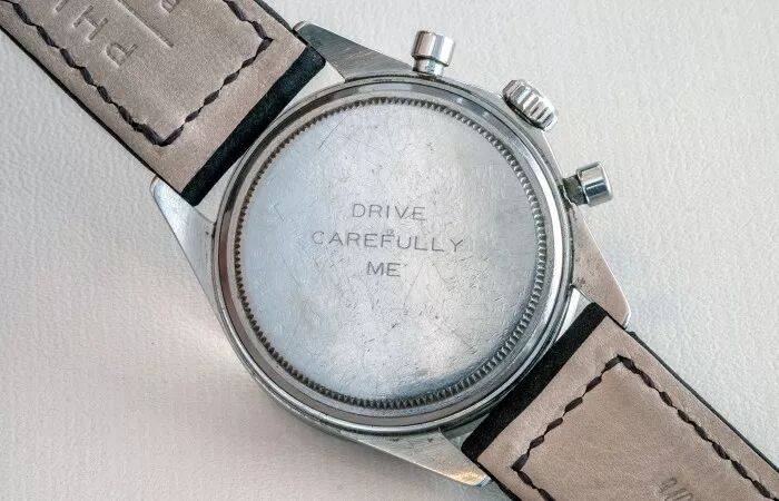 保罗纽曼本人的保罗纽曼实际上是,3色、无锁版本的6239。这只表在当年,被保罗纽曼本人送给了他女儿当时的男朋友(当然,后来跟他闺女掰了)。现在这只手表的所有者,也就是这位女儿的“男朋友”把手表拿出来,要在富艺斯拍卖行进行拍卖。拍卖日期是10月26日。保罗纽曼的“保罗纽曼”是他老婆送给他的,特殊的地方在于,手表背面有刻字,刻着“DRIVE CAREFULLY ME”。现在以含佣1743万美元的高价成交(约人民币1亿1784万元)。成为世界上最贵的手表。