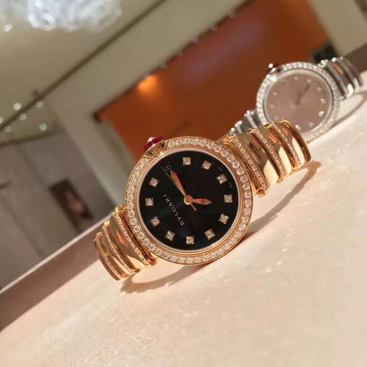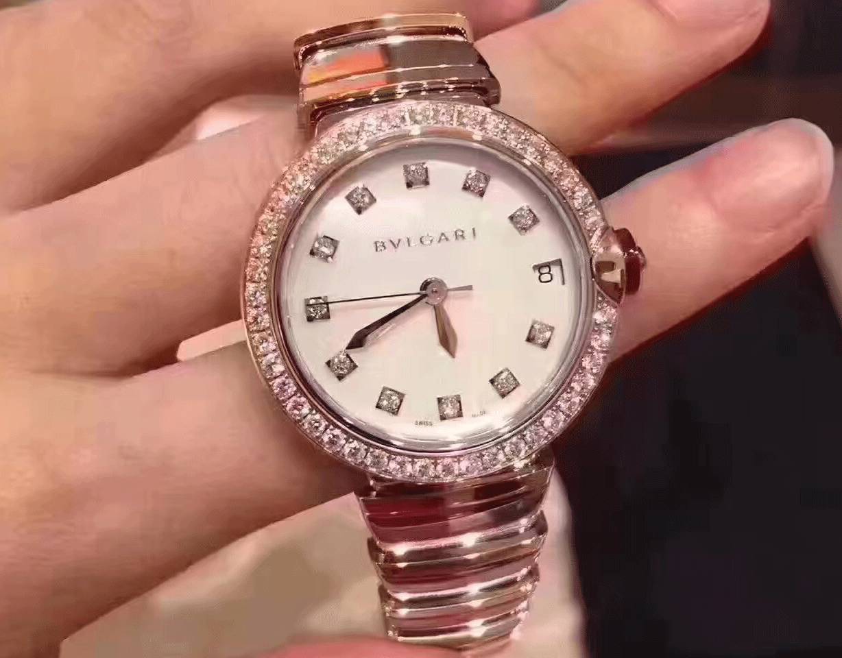 极光系列女士腕表  33毫米 18K玫瑰金精钢表链10300美金