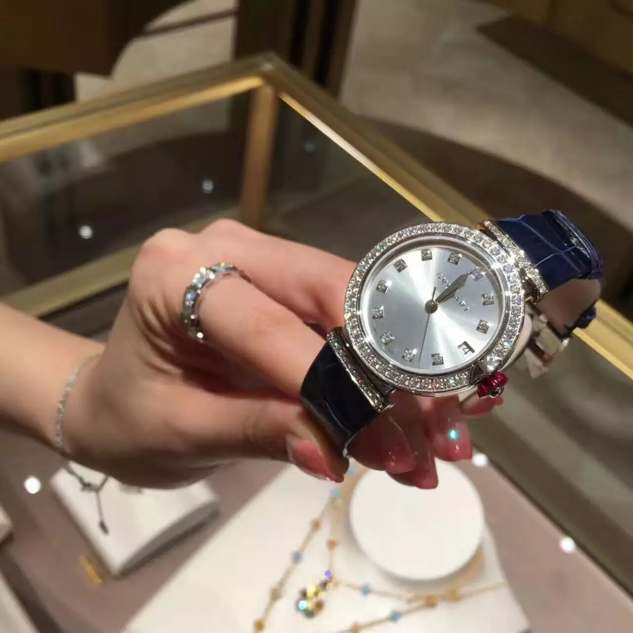 全白金镶嵌钻石女士极光系列腕表 自动上链背透可视机芯
