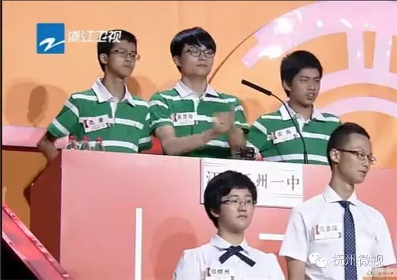 上图为抚州一中代表队参加浙江卫视《中华好故事》(第三季)节目现场,图中上排中间为黄羿奇同学。