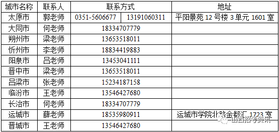 山西高考在线各地联系方式: