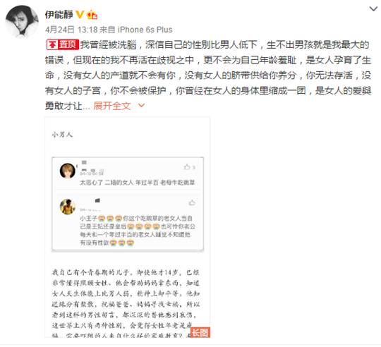 而面对这些评论,伊能静也没有因此关闭微博评论,而是狠狠的反击了那些自以为是的直男癌。