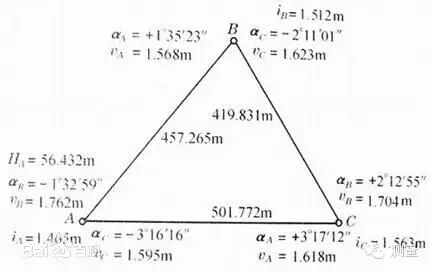 图7-2 三角高程测量实测数据略图