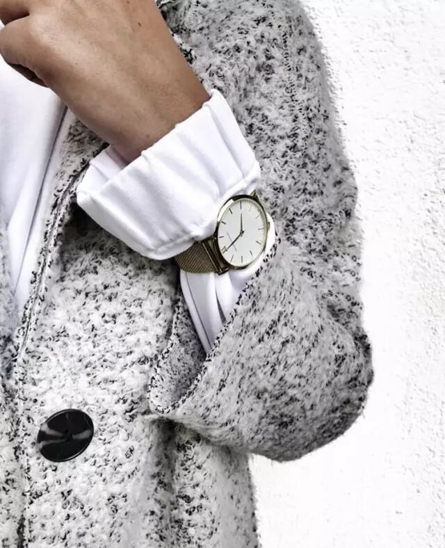 这是来自荷兰的极简手表品牌Cluse,极简设计风格,时髦,价格也很亲民,怎么搭配都好看,最喜欢他们家的黑色表盘和金属表链,有种性冷淡风,大表盘上除了品牌logo和时间读数之外没有别的多余的装饰。
