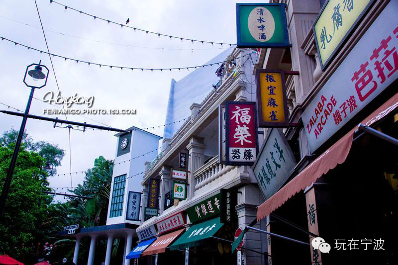 从山上下来之后缆车站旁边是新打造的香港老街景,非常复古有趣,像来到了另一个世界。