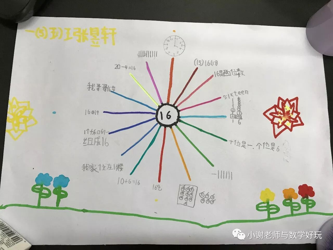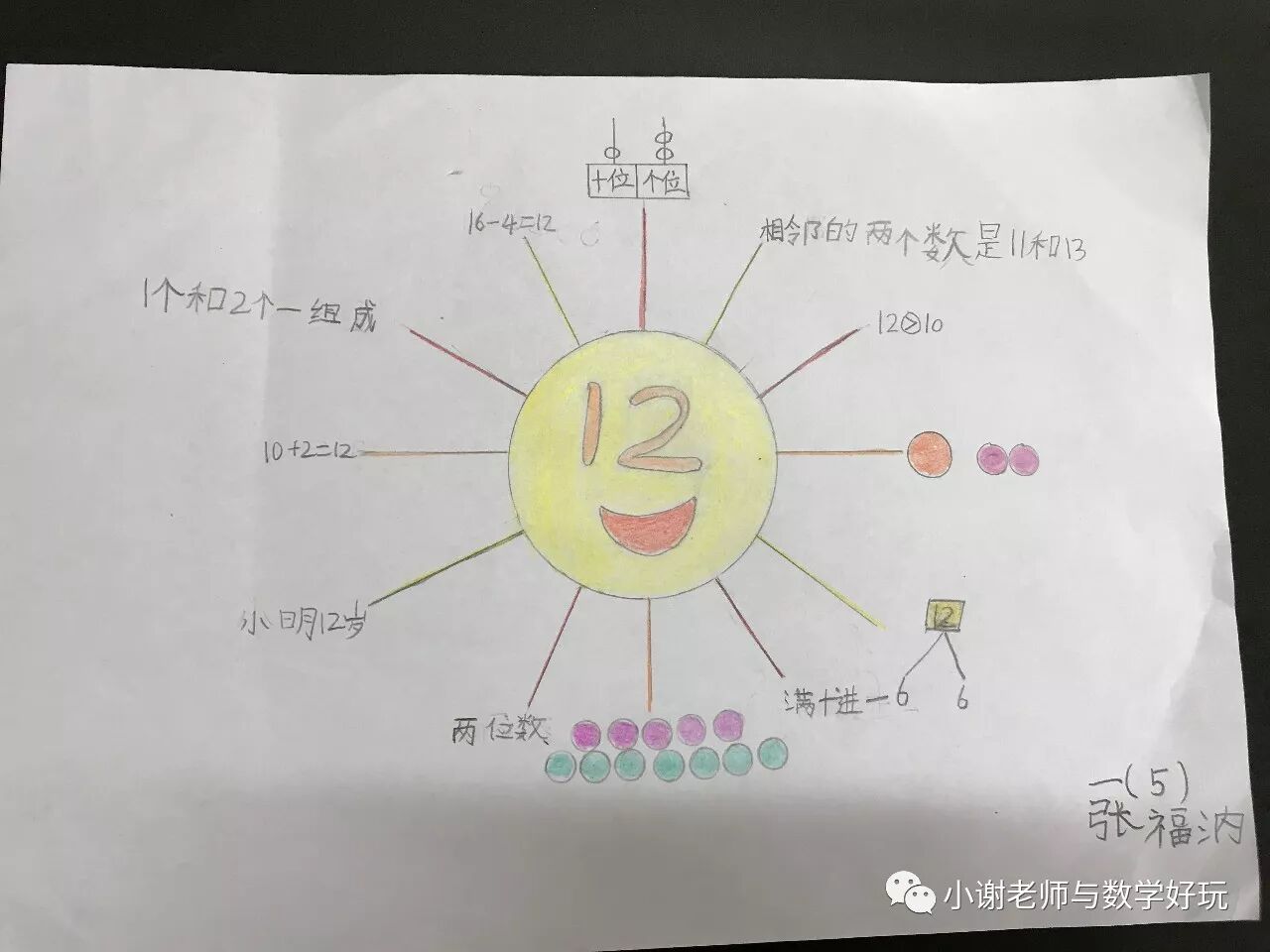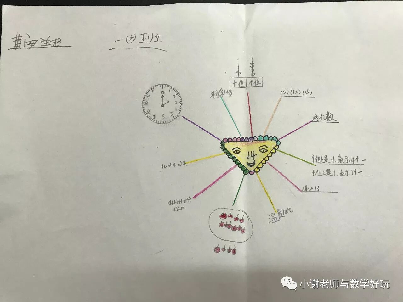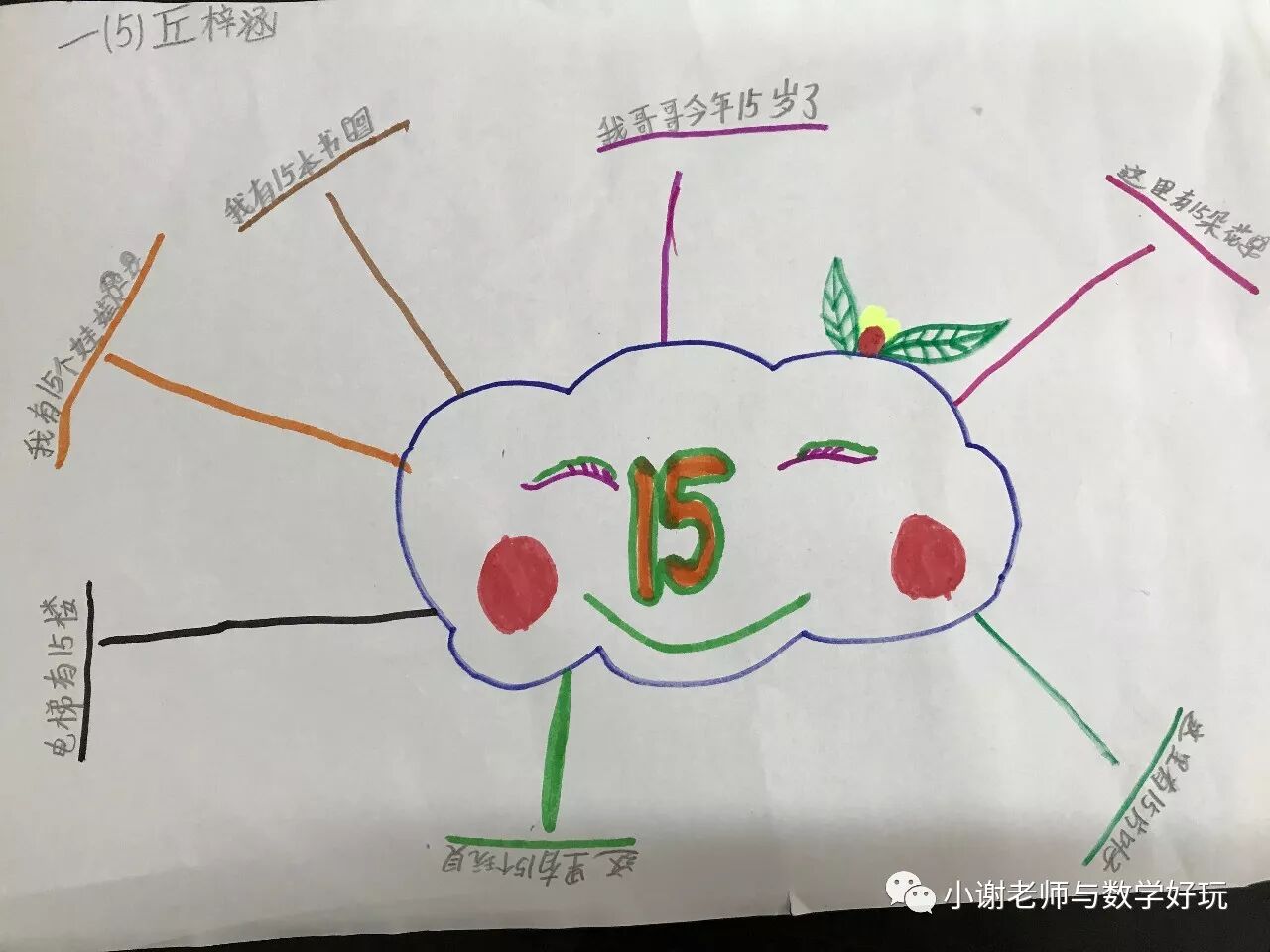 教学最好的方法是演示,在最近发展区的框架内,模仿也有建构的意义。课堂先演示古人的计数方法,数的范围从10以内扩展到了20以内,数多了10个,表示数的符号还是10个,用有限的符号表示无穷的数,真是了不起的发明!再让学生模仿古人,并去画十几的数,这些美到词穷的数字画,体现出了丰富的想象力和好奇心!