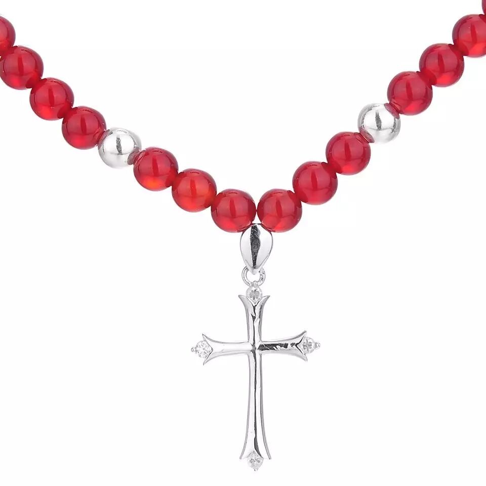 宝石,源自巴西天然红玛瑙;十字架吊坠,990足银;宝石与纯银的完美结合,极具保值性,源自主内,必属精品,所以安心。