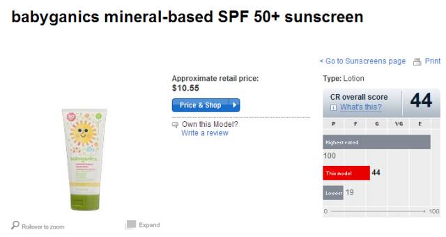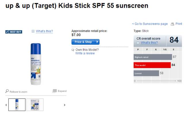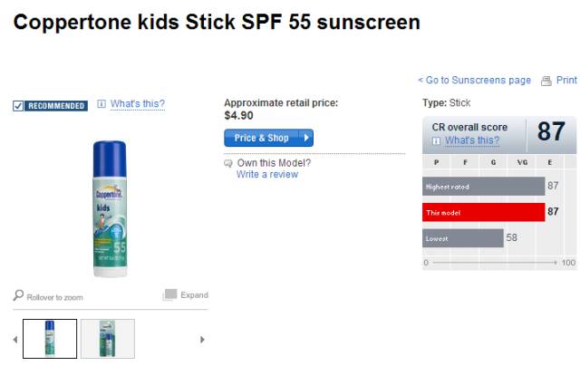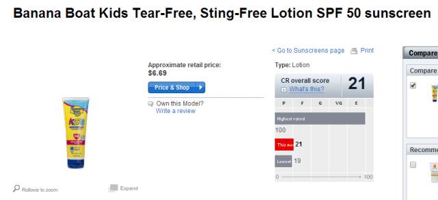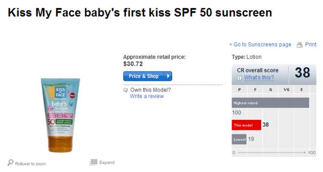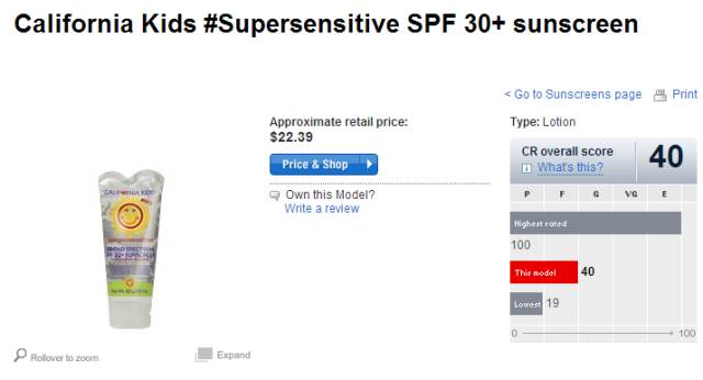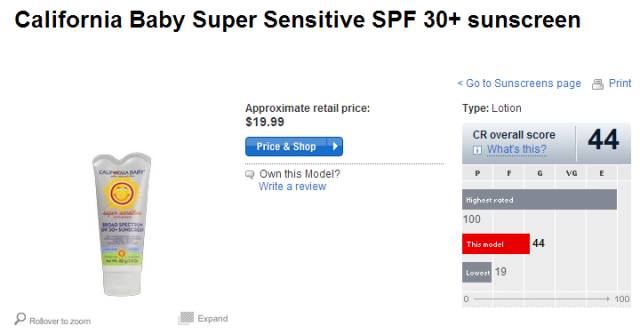 话说通过企鹅爸比教给大家的方法,相信你们都能自己去验证一款宝宝防晒霜的成分安全与否了。不过成分安全可靠,并不代表防晒效果就很好。那么怎么知道这些安全的防晒霜效果如何呢?别担心,美国人民真是太善解人意了,我们可以从最新的“2016美国消费者报告”关于防晒霜的部分中获得一些资讯。“美国消费者报告”是一本拥有74年历史的权威杂志,这份杂志从未登过广告,也不看任何企业的脸色行事,只把对消费品的评估报告的信誉放在第一位,因此可信度颇高。不过缺点和EWG一样,只针对美国市场销售的产品(想想也对,人家又不是叫世界消费者报告,管不到我们啊)。这份关于防晒霜的报告一共对超过60种的防晒乳、防晒棒、防晒唇膏等产品进行了测试,并给出了评分。不过由于并没有针对宝宝,所以其中只有小部分是标明了baby或者kids字样。防晒乳部分,企鹅爸比一共找出来6款。按分数从高到低排列分别是:从评分上可以看到,儿童专用防晒乳的成绩普遍不好。防晒效果最好的California Baby Super Sensitive SPF 30+ sunscreen和babyganics mineral-based SPF 50+ sunscreen,也不过只有44分而已,最差的CVS Kids Sun Lotion SPF 50 sunscreen更是只有19分。California Baby Super Sensitive SPF 30+ sunscreen在EWG的评分是最安全的1分,babyganics mineral-based SPF 50+ sunscreen是也还不错的2分。不过呢,在防晒棒类目下,Coppertone kids Stick SPF 55 sunscreen和up & up (Target) Kids Stick SPF 55 sunscreen倒是获得了87和84的高分。但对比EWG的数据,就有点吓人了,两款都是代表危险的红色7分。![]()
