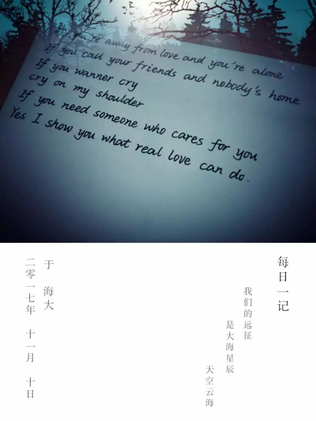 To 养殖1173的徐昊旸,很晚了,但是我还是要来给你告个小白。暑假对你们男生的印象都不大深刻,后来军训的时候我以为你很讨厌我,所以跟你接触也不多。后来慢慢发现你是个很好的,生活很多花样,各种经验丰富的人。你会种草,养龟,钓鱼,你以后的老年生活一定很丰富,哈哈哈。这两个月感觉班上只要有什么事情发生你总会出来说几句话hold场。你是个让人会感觉到安心的人,很期待未来的哪个幸运的女孩子会遇见你。还记得我的阴差阳错吗,可以说命中注定。很期待你会因为乌龟绘写一生。作为我们班的乌龟大户,你要发扬光大。以后我们要是没出路了就来投靠你了噢,到时候给我们安排个什么工作啊什么的哈哈哈。包吃包住!还要包幸福!班里很多东西都是乌龟,最开始是因为你,现在是为了集体。乌龟班,养殖3班。昊旸,好羊。晚上帮写手抄报,写了你的名字噢。我们3班的男孩子很多都很暖心,很高兴能够遇见你,很幸运还有四年青春可续。爱你么么扎。