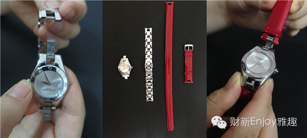 表带的更换非常简单,只需打开表头处的固定扣即可更换,建议在夏天佩戴钢表带,秋冬佩戴皮表带