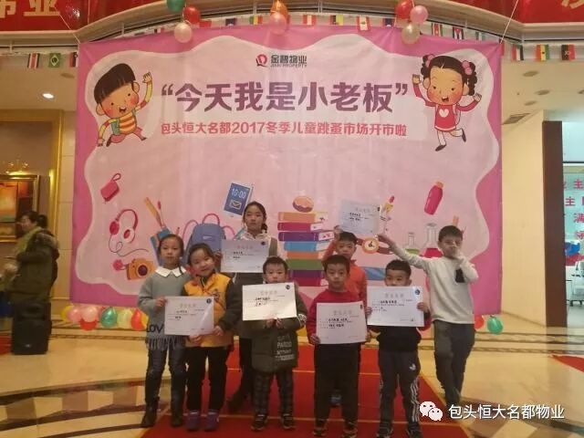 孩子健康、快乐地成长是每一个家庭的希望,望子成龙、望女成凤更是每个家长的理想和愿望。培养孩子拥有一个健康向上的心态,是奠定孩子未来走向成熟、成功的基石。为了让各位小宝贝们健康成长,养成良好的生活习惯和节约意识,树立正确的金钱观和价值观。2017年11月26日包头恒大名都物业服务中心举办了冬季儿童跳蚤市场。快来一起看看现场的精彩集锦吧!
