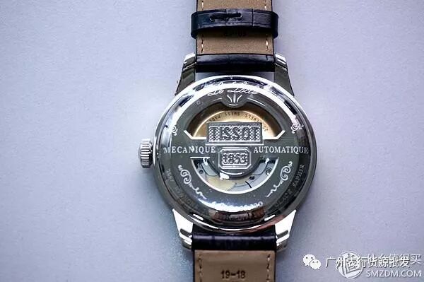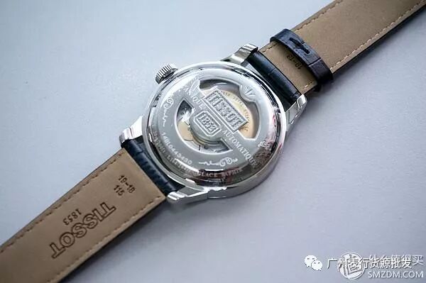背面的最上方雕刻着Le Locle的艺术字体,正上方是一个三叶草的图案,正中间是Tissot 1853的标识,看上去很有质感,而底下14开头的编码,代表着这是一块14年生产的力洛克。