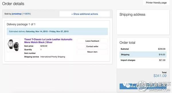 左边显示是由ebay GSP服务部发出的,就是一家公司Pitney Bowes代理负责报关发货等手续,实际上这家公司很坑,哪怕最后没有被税,也是无法退税的。