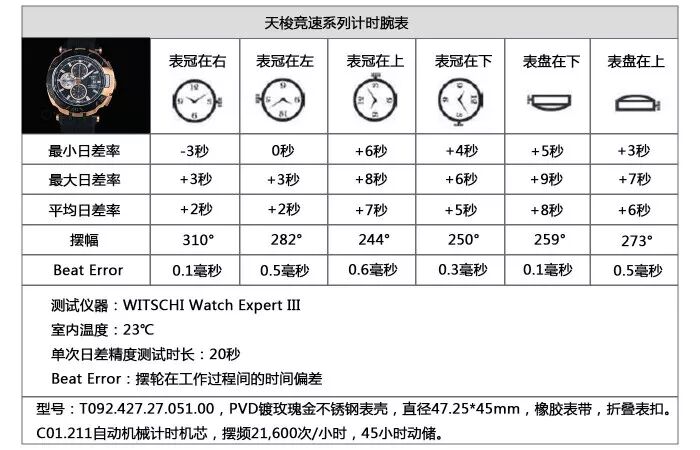 经过我们的试戴与数据测量,我们可以告诉大家的是,这枚腕表的佩戴舒适度很高,计时按钮操作很轻松,比常规的7750手感要好不少,时间读取也很方便,造型有范儿很大气。在走时方面,我们可以看到常规状态下,它的走时是不错的,达到了很好的精准性,但是不同方位下,摆幅会有一些偏差,同时,在开启计时的状态下,走时会偏快。