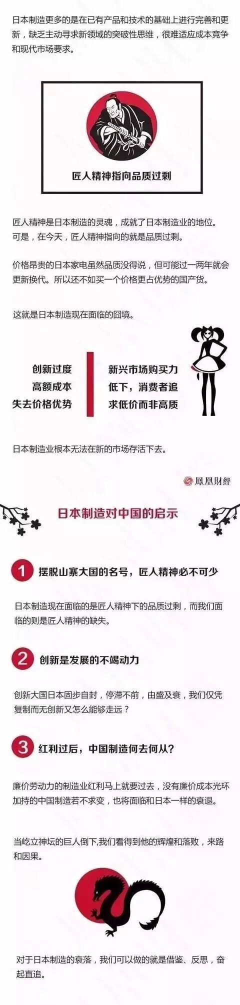 到底日本为什么会走到今天?有专业研究日本经济的机构指出,日本制造业之所以跌落神坛,原因有三:一是缺乏危机意识,固步自封;二是企业僵化,难创新;三是匠人精神指向品质过剩。