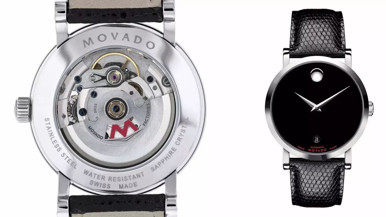 与其他不同的是,这款表在6点位置开置了一个小圆形窗口以提供日历显示,窗口下用红色字体标注了MOVADO的字样,是一款极具设计感的摩凡陀,抛开了常规的腕表理念,而且它还是用的背透设计,自动陀上镂空雕刻了红色的M字样,非常彰显个性与时尚。