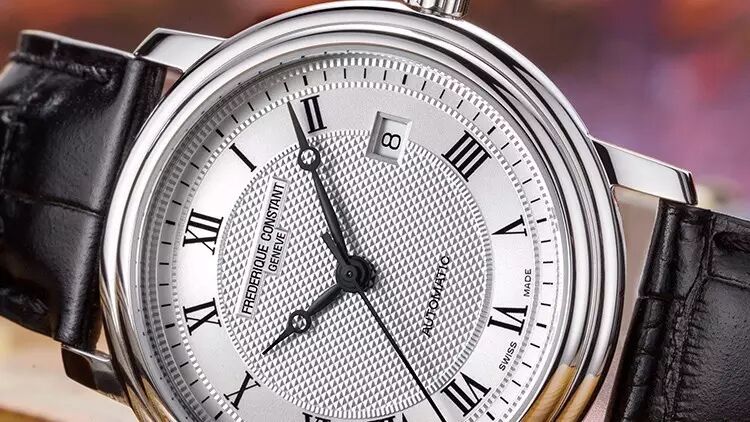 康斯登是一个拥有完全自产机芯的瑞士品牌,这款百年典雅系列的康斯登表盘打造了奢华的手工玑镂纹饰,罗马数字与宝玑指针的搭配延续了传统制表的规范,黑色的指针和数字与银白色的表盘颜色对比强烈。