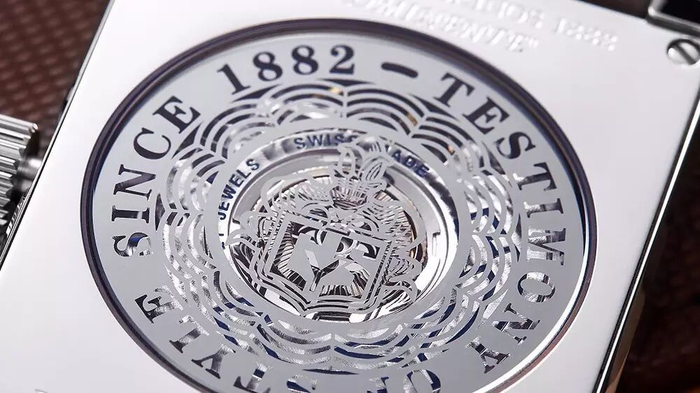 表盘上6点钟位置的日历窗口巧妙的设计成老爷车杯的标志形状,呼应12点的CYS标志,令人不禁联想起库尔沃和老爷车赛事之间深厚的联系。完美的流线型蓝宝石表镜与表耳的弧度自然贴合,表背还是美学镂空工艺的设计,美不胜收。