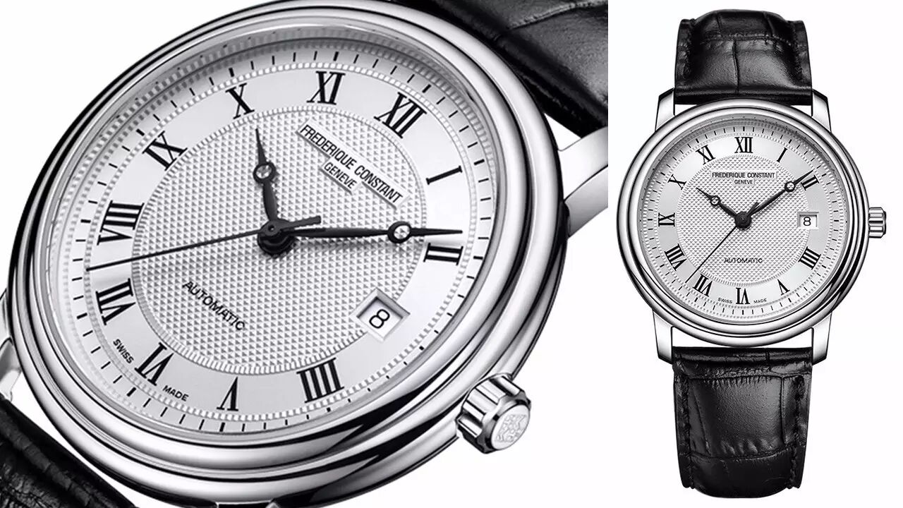 腕表搭载独家改良的FC-303机芯,背透设计的表底可以清楚窥见康斯登机芯的高级打磨技术,自动摆陀上饰有清晰的放射状太阳纹和日内瓦纹饰。表底的表壳上还用花体英文镶刻上了康斯登的名称以及产品的产地和编号。