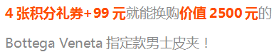 指定款男士钱包(价值2500元)99元就能到手!(4张积分礼券+99元换购,详见文末)