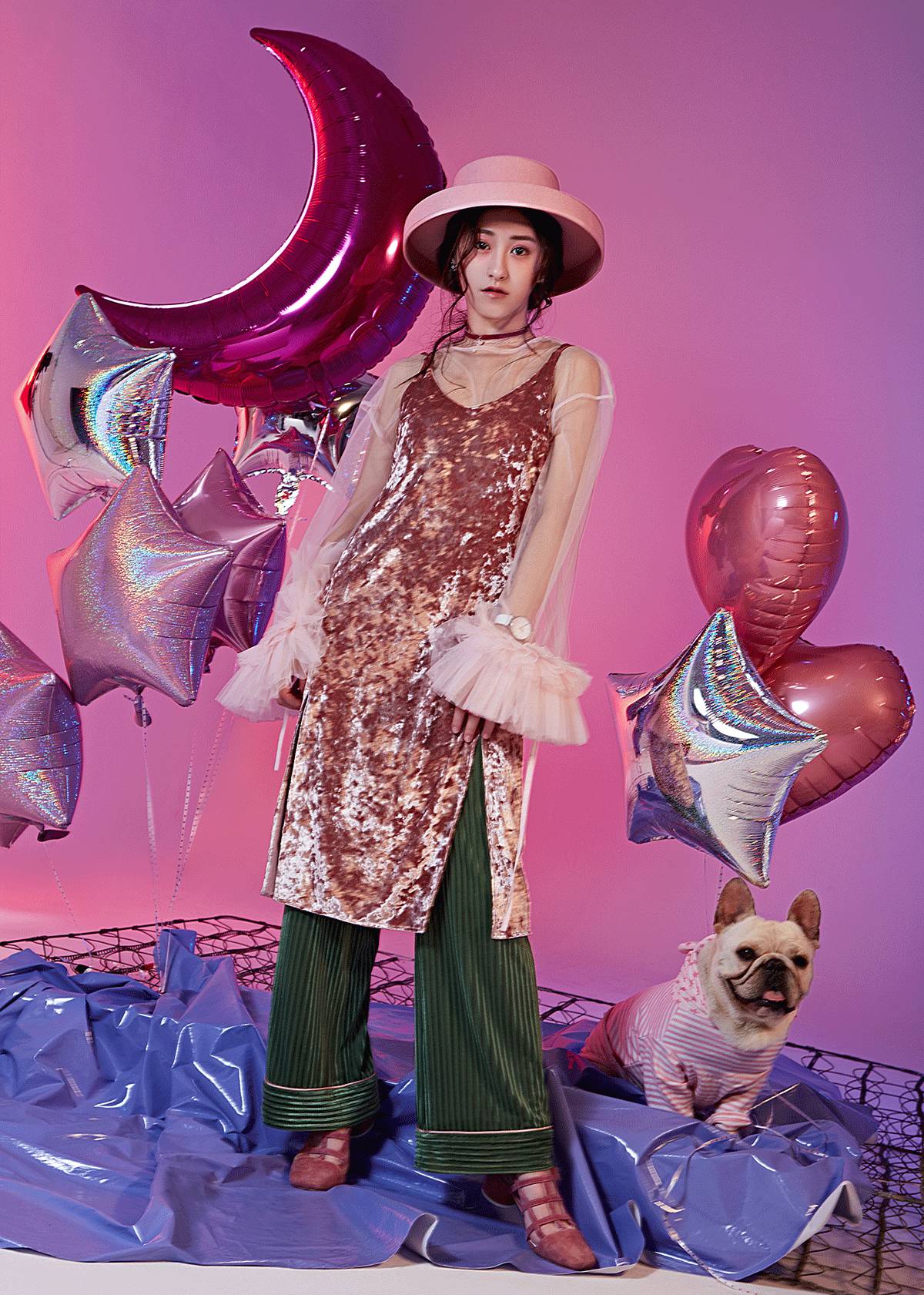 ▲ 内搭 / VINCI ZHANG 粉色丝绒连衣裙 RMB 890