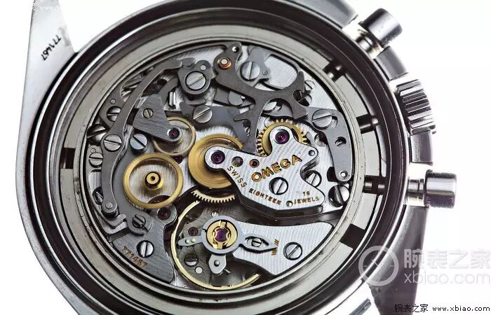 各位都知道,现在欧米茄已经全面使用同轴擒纵机芯了,到目前的至臻同轴机芯已经非常完善了(现在最新的是8900)。但是欧米茄唯独有一个手表,没有使用同轴擒纵机芯,就是登月超霸。登月超霸使用的机芯我觉得非常“良心”,从321、861到1861,登月超霸一直使用手动上弦机芯。欧米茄321机芯和百达翡丽CH27机芯,本质上是一个机芯;欧米茄861/1861机芯,包括沛纳海、雅克德罗、萧邦、百年灵都使用过,但是在今天的在售手表中,也只有欧米茄在继续使用了(1861机芯是861机芯的镀铑版本,我们可以看到861机芯夹板是黄铜的颜色,1861镀铑后是银色的)。上到几十万的表,下到几万块钱的表,使用321/861/1861的手表中,欧米茄是价格最低的。即使按公价算的话,只要3、4万块钱,就能买到使用这枚经典手动上弦计时机芯的表,只有欧米茄登月超霸可以办到了。