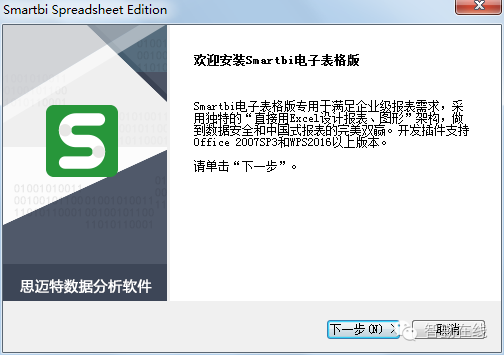 右键点击下载的Smartbi Spreadsheet Edition.exe文件,选择以管理员身份运行,点击【下一步】运行。