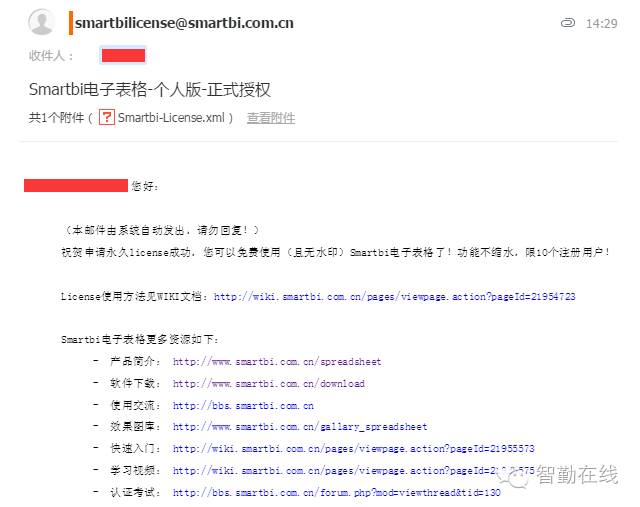 等待 Smartbi 厂商将授权文件发送到指定邮箱,授权文件是xml格式文件,将文件下载到本地。