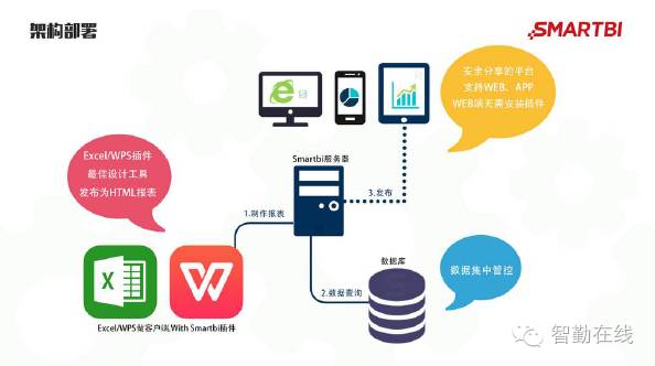 完全基于Excel的报表开发工具。在Excel中安装Smartbi电子表格插件,可以直接在Excel中设计报表格式或者是进行数据分析,可以直接利用Excel自身的表格、图形、函数等能力,站在巨人的肩膀上,直接让Excel作为一个报表开发工具。