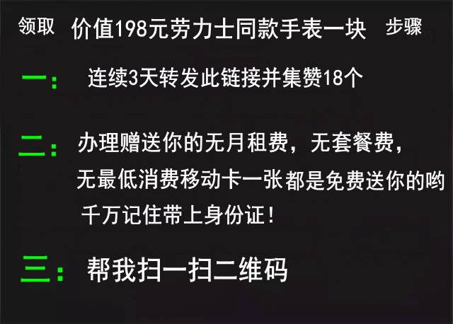 免费领取无月租随心卡一张及价值198元劳力士同款手表一块