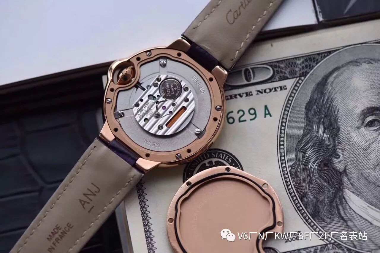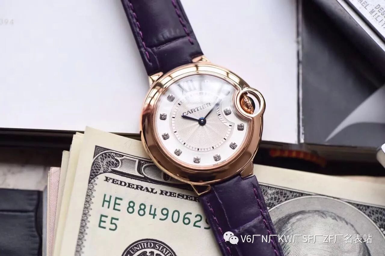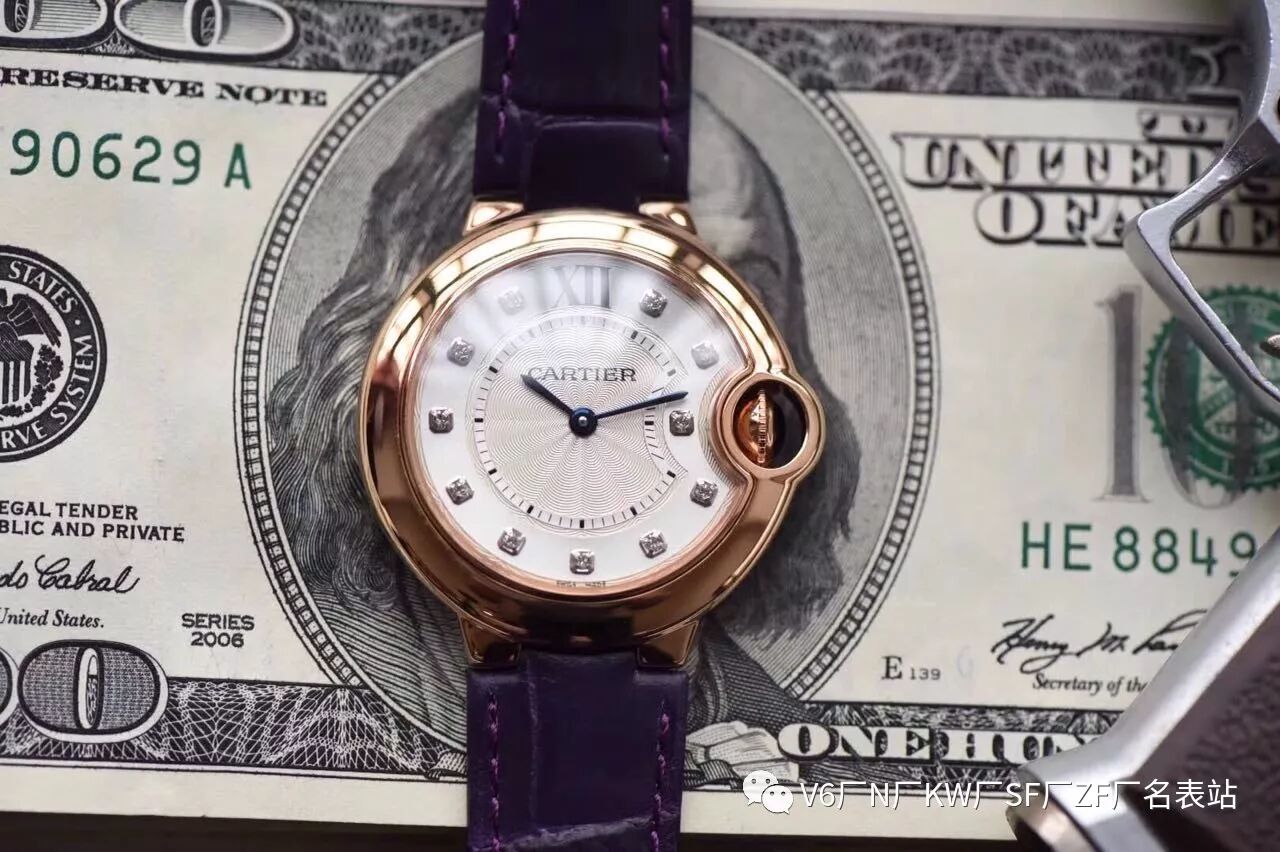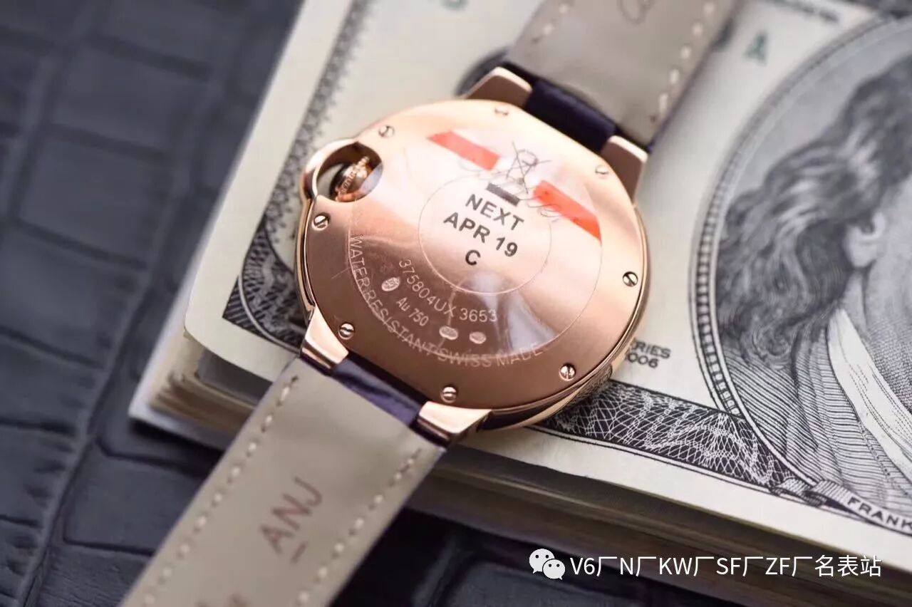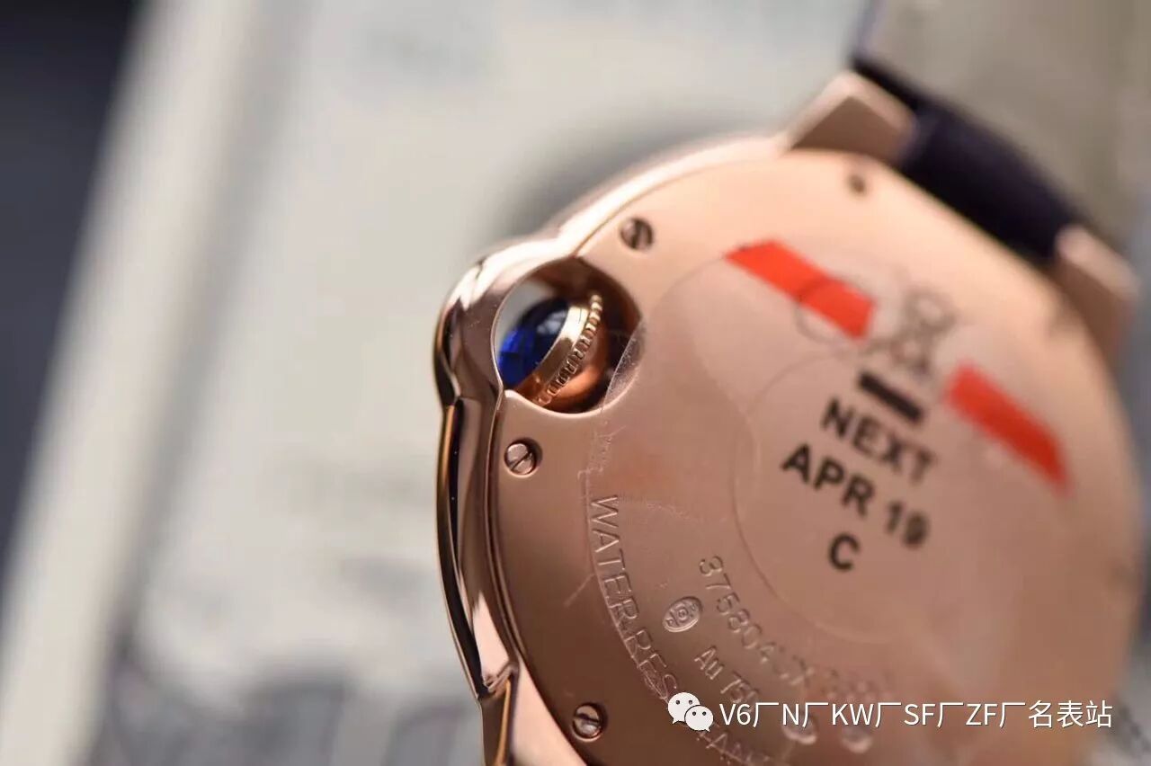 V6出品~最高版本卡地亚蓝气球33mm玫瑰金石英款,最适合东方女性的尺寸!同步原装底盖au750印记(市场独家)鱼眼蓝宝石镜面,乱真原装瑞士石英机芯原版工艺的烧钢蓝针,经典良品。认准V6独家对版瑞士157机芯,由内而外的乱真之作