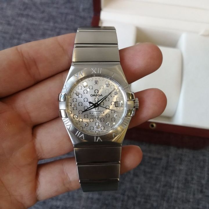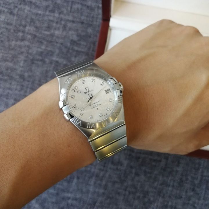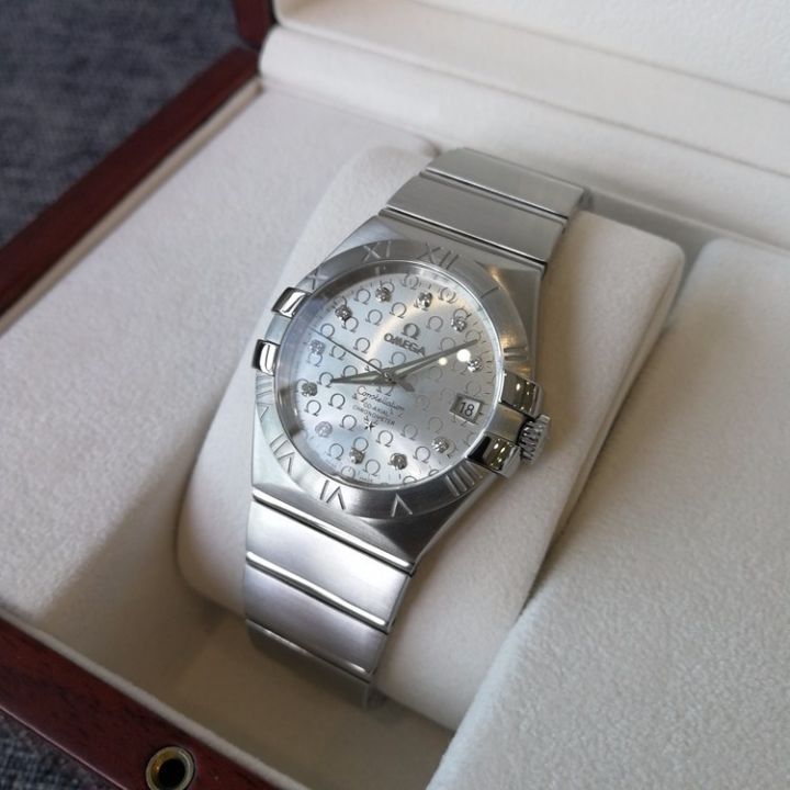 35毫米表径,钻石刻度,欧米茄标志水印表盘设计独特经典。同轴擒纵稳定的2500机芯耐用可靠。手表成色非常好,背透机芯设计美观大方