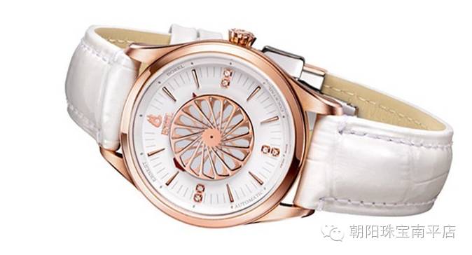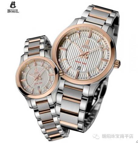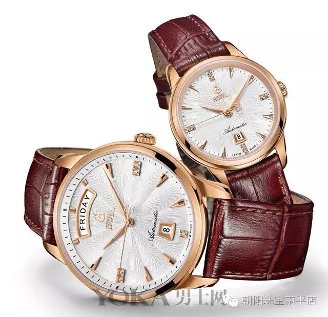 依波路祖尔斯自动系列GGR9160W-221BR、LGR9160-221BR情侣对表,集中呈现了依波路160年制表工艺的精髓,用饱含情感的笔触凿刻每一个细节,寓意不凡。丰润的镀玫瑰金表壳配以经典大三针布局,秒针尾饰EB (Ernest Borel) 独有的花体蝶形商标,长三角稙钉采用复杂几何工艺镂空,形成多个反光面,明暗渐变丰富。山茶花的表盘底纹,,仿佛有一种自然的张力,使得每个刻度都意味不凡。而3H、6H和9H位呈倒三角方位镶嵌的钻石,配以紫丁花样底托,花语代表爱情萌芽及初恋时的纯挚情怀。男表12H位周历窗、6H位日历窗,表盘镶嵌5粒天然钻石;女表6H位日历窗,表盘镶嵌8粒天然钻石,情侣表透视表底特别蚀刻依波路瑞士制表厂房图案,内涵深刻,别具纪念意义。