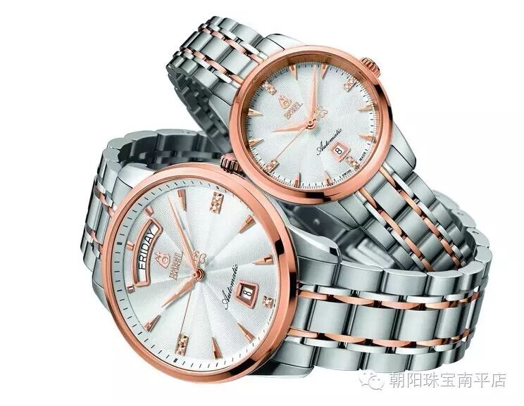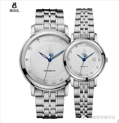 依波路ErnestBorel-机械——皇室系列 GS6155-2590、LS6155-2590 情侣机械表瑞士制造2892A2镂通自动机芯,依波路特制精美路易十四装饰花纹,不锈钢表壳、表带 表面镶嵌11粒天然钻石。除了镂通限量版,皇室系列还同时推出对表款式,同样选用2892自动机芯,表面中间扭索状装饰花纹,镶嵌10粒天然钻石和罗马数字刻度,3H位日历显示,带荧光表针,男款儒雅大方,女款精致优雅