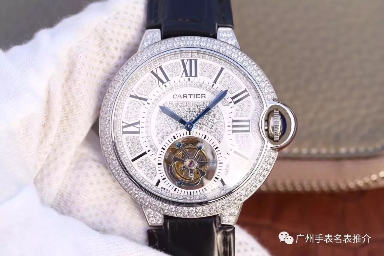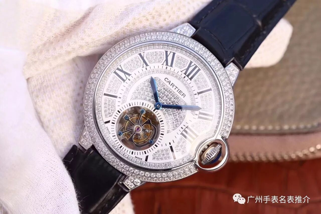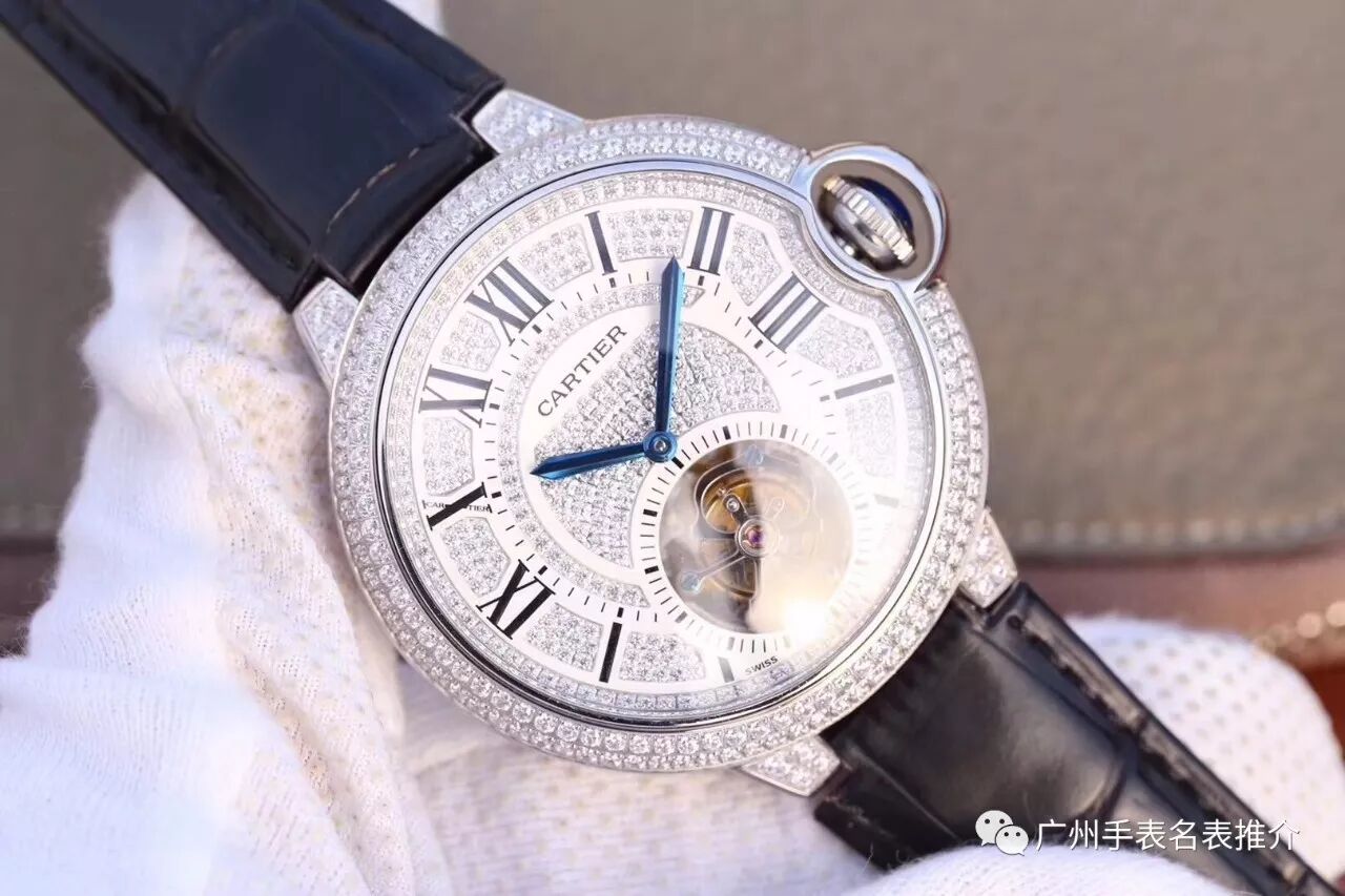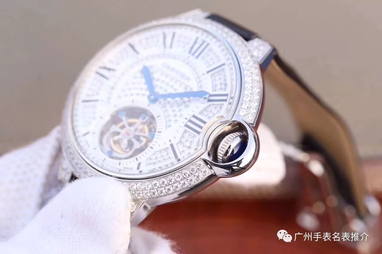 卡地亚蓝气球(BallonBleude)真陀飞轮,外观,机芯全面升级!火热程度堪称经典,超乎想象!完美融合经典与创新。表盘镶钻流露华贵奢美。主要升级改进:外观和机芯背面设计同正品一致,超强鱼眼效果蓝宝石玻璃,手动上链极为轻松。全新【同轴】陀飞轮机芯(非偏心)也是目前最新,极为成熟的机芯,性能优越,非常有保障。此款浮动式陀飞轮以“C”字形陀飞轮框架指示秒钟,每分钟可围绕轴转动一圈,飞轮上采用昂贵的蓝钢螺丝固定,有极高的技术要求。出厂质量严格QC,每一块手表机芯检测数据均保证达天文台认证级别。柏林(BL)工厂倾力打造,创造新一轮的“蓝气球”风潮。