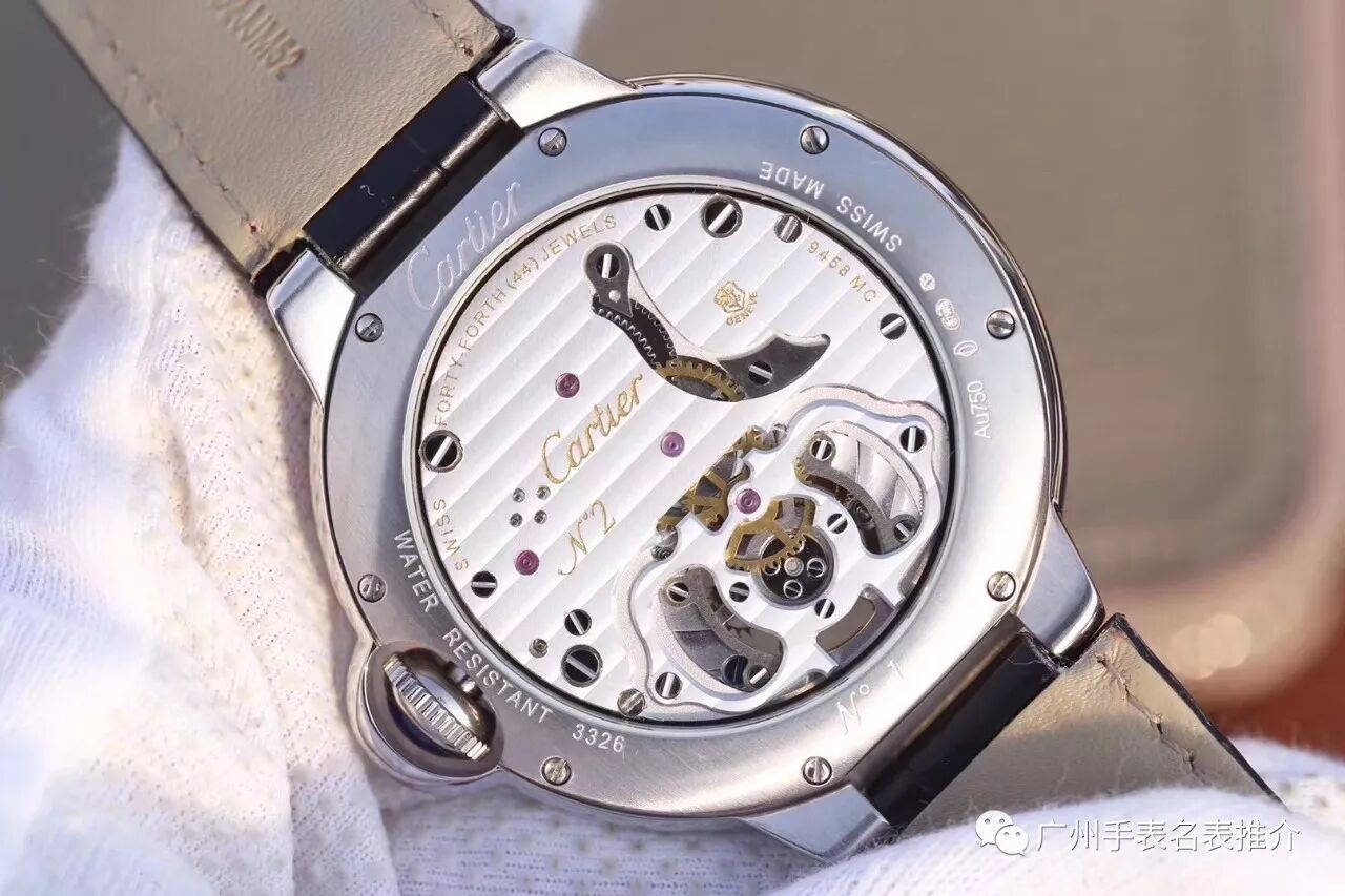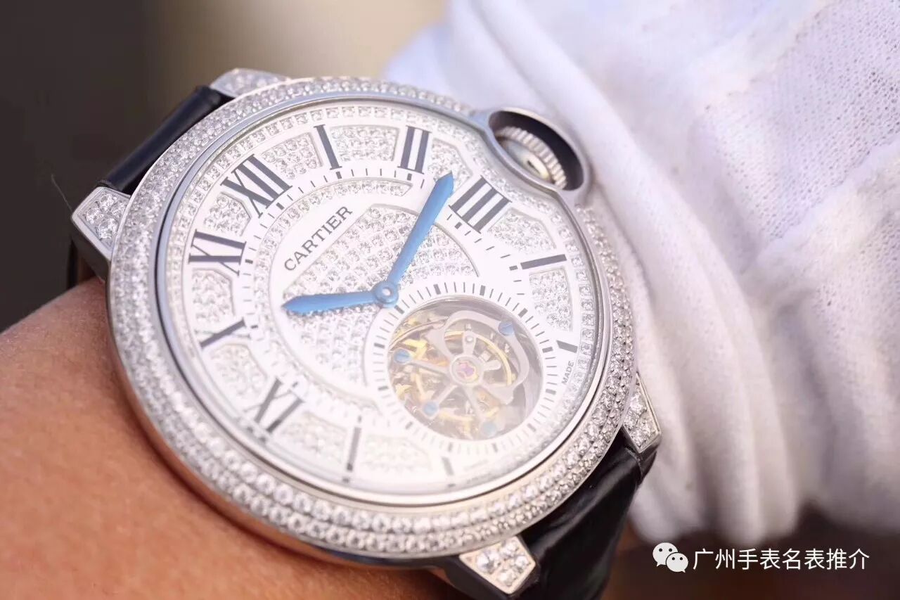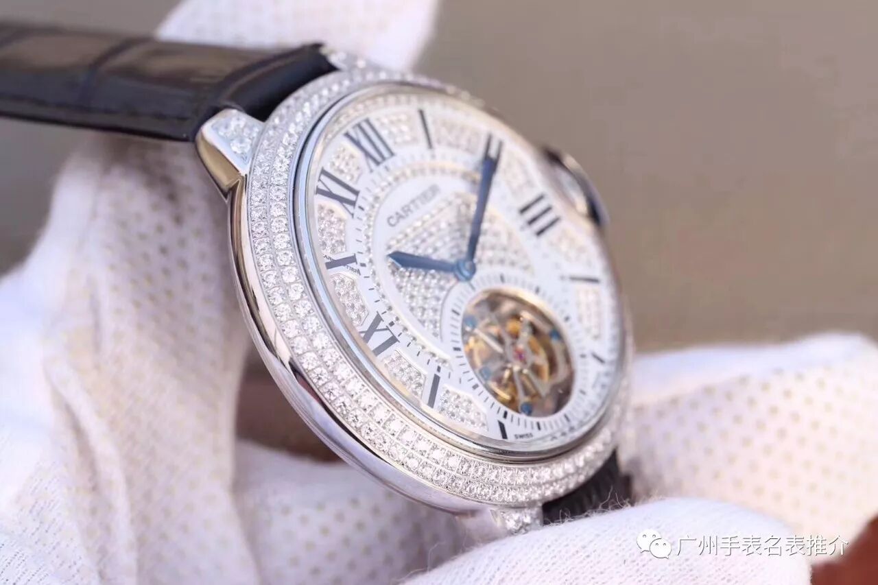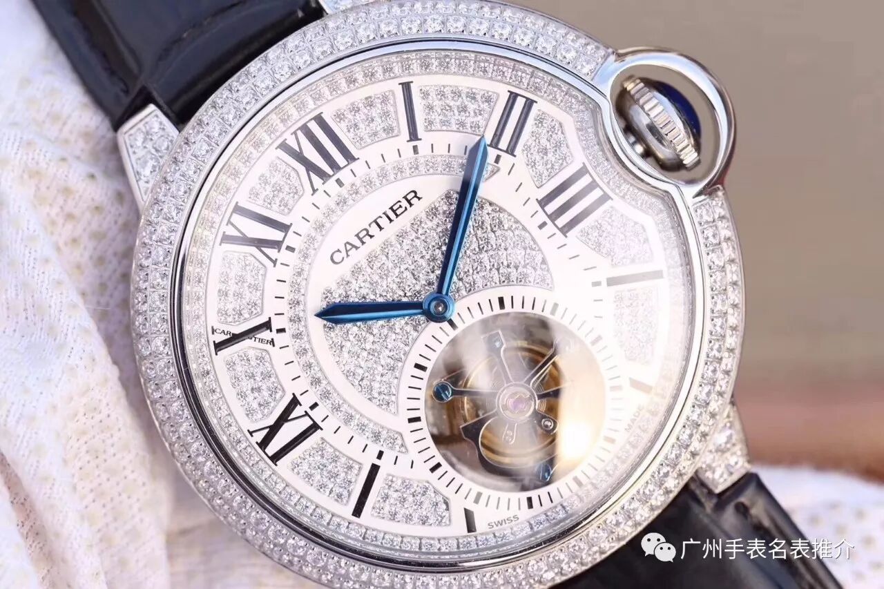 卡地亚蓝气球(BallonBleude)真陀飞轮,外观,机芯全面升级!火热程度堪称经典,超乎想象!完美融合经典与创新。表盘镶钻流露华贵奢美。主要升级改进:外观和机芯背面设计同正品一致,超强鱼眼效果蓝宝石玻璃,手动上链极为轻松。全新【同轴】陀飞轮机芯(非偏心)也是目前最新,极为成熟的机芯,性能优越,非常有保障。此款浮动式陀飞轮以“C”字形陀飞轮框架指示秒钟,每分钟可围绕轴转动一圈,飞轮上采用昂贵的蓝钢螺丝固定,有极高的技术要求。出厂质量严格QC,每一块手表机芯检测数据均保证达天文台认证级别。柏林(BL)工厂倾力打造,创造新一轮的“蓝气球”风潮。
