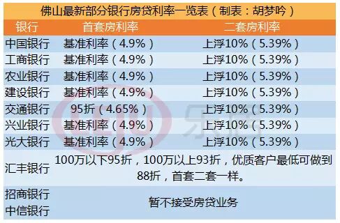 6月8日,乐居编辑致电佛山十家银行获悉,目前除了交通银行和汇丰银行还享有一定的优惠利率外,绝大部分银行首套房贷已调至基准利率,个别银行甚至已暂停放贷。
