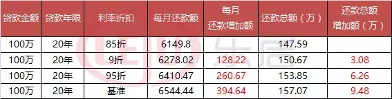 以贷款100万为例。房贷利率调至基准利率,比此前风行的85折,每月要多缴395元,20年算下来要多还近9.5万元。