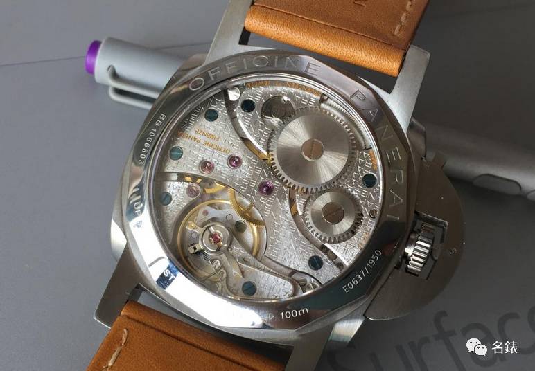 三、采用进口超级夜光,成就了夜光之神的沛纳海传奇。看看机芯全部为日内瓦钢印,可以看出工厂也是非常用心的。