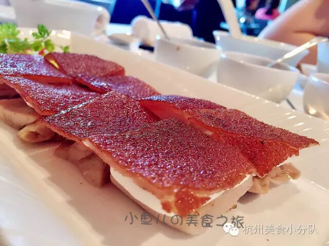 颜值高,乳猪皮已经完全走油,咬一口可以听见耳边回荡着酥脆的声音,乳猪香甜的肉质,搭配这三层口感,味美而不腻,唇舌耳鼻眼,五官都在享受着这一刻。