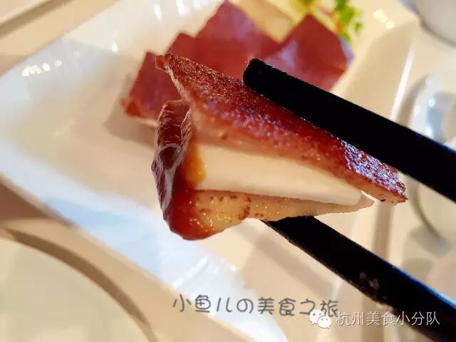 乳猪脆烤的猪皮与乳猪肉分离,中间增加一层类似棉花糖的片状食材。