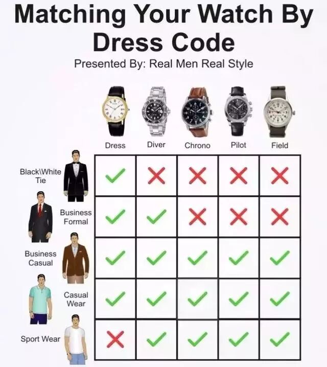 一款好的腕表需要合适的服装搭配才能展现出它真正的魅力,所以腕表穿搭很重要。下面几张图直观告诉你应该怎么搭配。