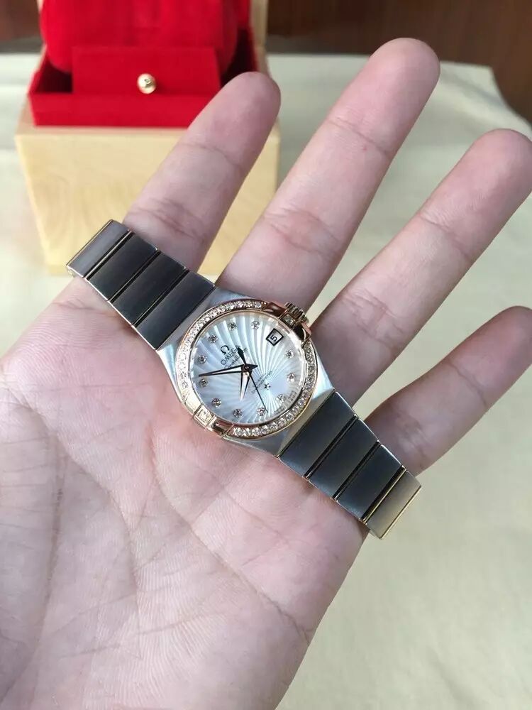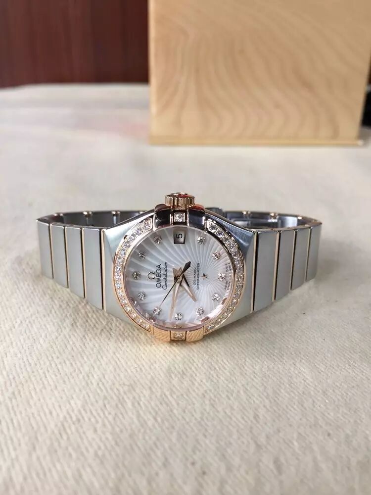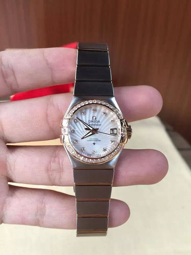 OMEGA欧米茄星座系列18K玫瑰金镶钻机械女款