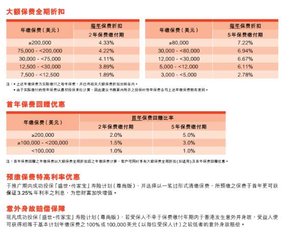 注:缮发年龄0岁,大约2%原有保费折扣优惠