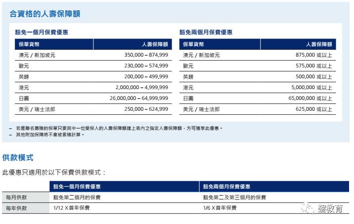 1.豁免首期保费(除整付保费)之海外付款行政费用