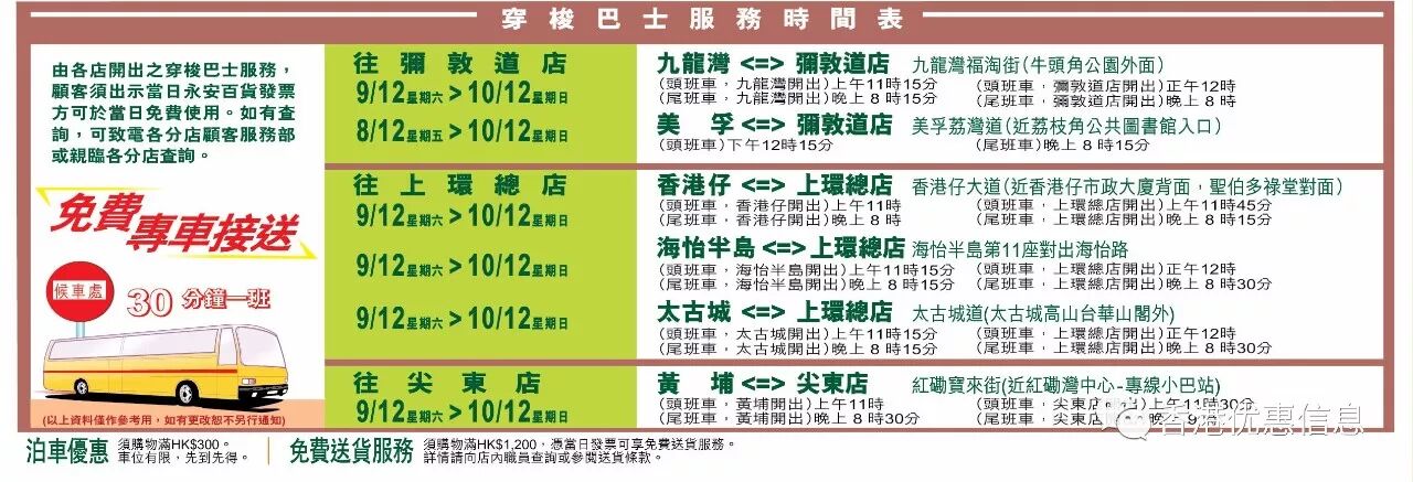 購物滿HK$300,可免費泊車一小時,最多二小時。